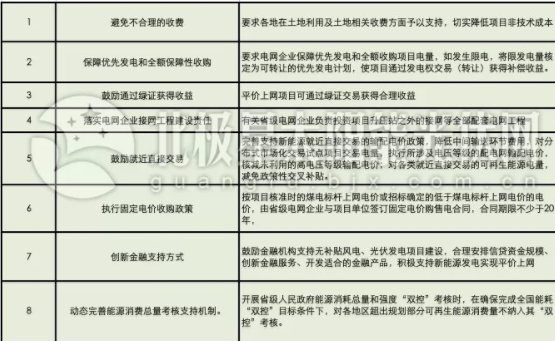 為推動2019年首批風、光平價項目的順利實施,發改能源19號文配備了全額保障性收購、20年固定電價等八項支持政策措施(詳見下表)。