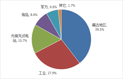 根據CNESA全球儲能項目庫的不完全統計,截至2019年底,中國已投運的、與分布式光伏配套建設的儲能項目累計裝機規模為175.0MW,占全部光儲項目總規模的21.9%。分布式光儲項目的應用場景相對比較多樣,主要包括偏遠地區光儲、工業光儲、光儲充式電站、海島光儲和軍方光儲等。其中,偏遠地區光儲項目的累計投運規模最大,為69.1MW,占比達到39.5%,比去年同期下降近14個百分點,而工業光儲項目的占比則比去年同期提升了近8個百分點,利用光儲模式降低電費支出的工業用戶越來越多。