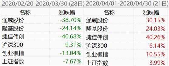 通過下圖還可以清晰的看到,在整個疫情期間,當(dāng)系統(tǒng)性風(fēng)險釋放的時候,光伏行業(yè)的高貝塔屬性非常明顯,下跌超過30%不在少數(shù),而當(dāng)4月份整個市場處于震蕩上漲的過程中,光伏行業(yè)龍頭隆基漲幅24%,通威漲幅30%,捷佳偉創(chuàng)漲幅40%,整體漲幅同樣驚人,遠(yuǎn)超大盤指數(shù)。