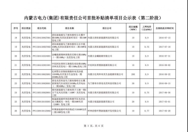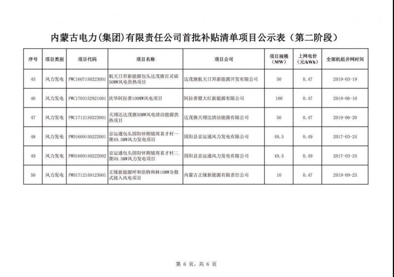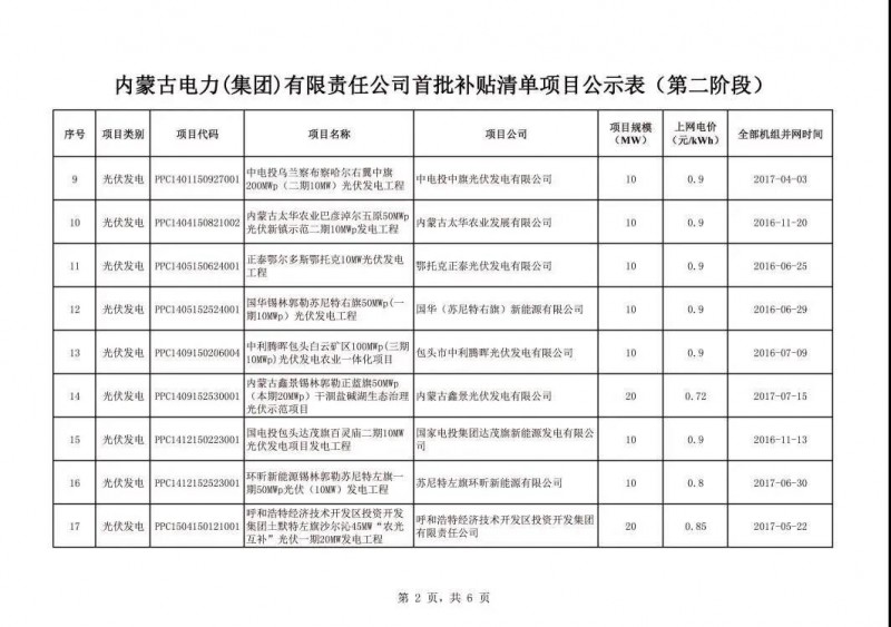 附件:內蒙古電力(集團)有限責任公司首批補貼清單項目公示表(第二階段)