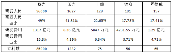 需要指出,華為的業務領域十分廣泛,在研發人員數量、費用兩方面超過其他企業不足為奇。但從研發人員和費用的占比來看,華為能快速成為逆變器龍頭、并連續5年穩坐頭把交椅,還是付出了許多心血的。