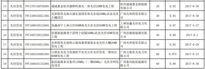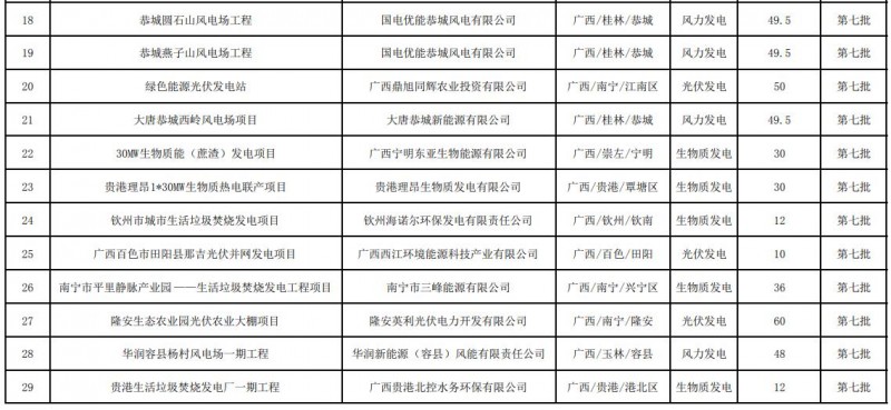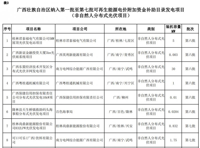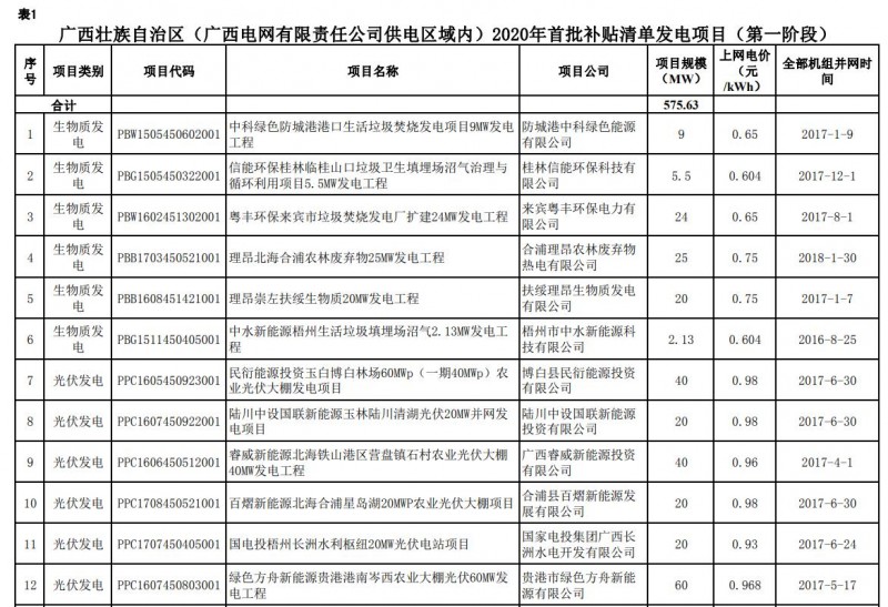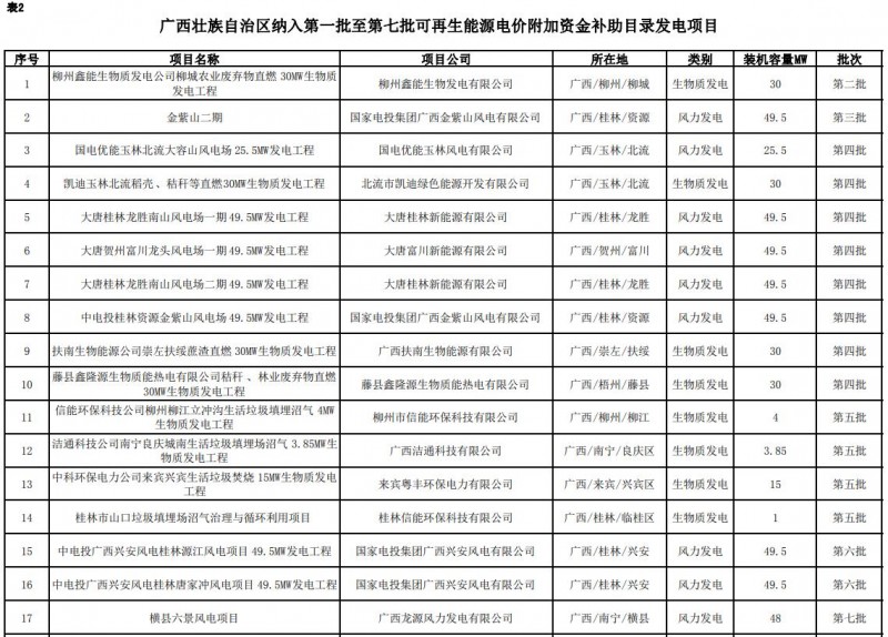 廣西壯族自治區(qū)(廣西電網(wǎng)有限責任公司供電區(qū)域內(nèi))首批可再生能源發(fā)電項目補貼清單(第一階段)