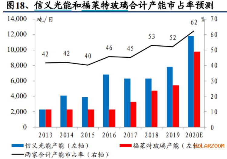 興業證券表示,目前領先的信義光能和福萊特玻璃的產能和成本優勢已經穩固,預計兩大企業在2020年末光伏玻璃行業的市占率將超過60%,未來兩大企業規模和成本優勢很難被超越。