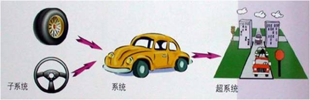 在系統這個概念下還有子系統和超系統兩個概念。所謂子系統,是指一個系統由各個不同部分組合而成,以實現不同的細分功能。比如發動機就是汽車這系統的子系統。所謂超系統,是指系統之外的對系統的運行有影響的事物。比如道路、交通信號燈等是汽車這個系統的超系統。超系統一般為系統所隸屬的外部環境。