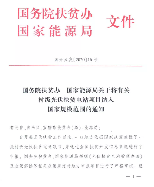 國務院扶貧辦和國家能源局聯合發文:未通過審核的村級光伏扶貧電站項目,將無法拿到國家補貼!