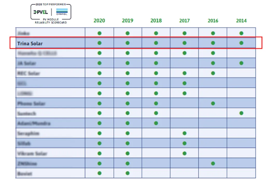 PVEL組件業務負責人Tristan Erion Lorico評價道:“連續多年獲得‘最佳表現’稱號,體現了天合光能對組件品質的不懈追求。只有依托嚴格的原材料管控及產線管理,組件制造商才能打造出兼具高性能及高可靠的產品。我們祝賀天合光能再度登上全球‘最佳表現’組件制造商之列,也期待公司能為行業帶來更多值得信賴的組件新品。”