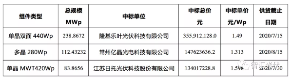 中標(biāo)價格:總價,355912128元;折合單價,1.490元/Wp;