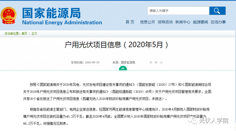3月6日,國家能源局發布了關于2020年風電、光伏發電項目建設有關事項的通知中提到,2020年度新建光伏發電項目補貼預算總額度為15億元。其中:5億元用于戶用光伏,補貼競價項目(包括集中式光伏電站和工商業分布式光伏項目)按10億元補貼總額組織項目建設。