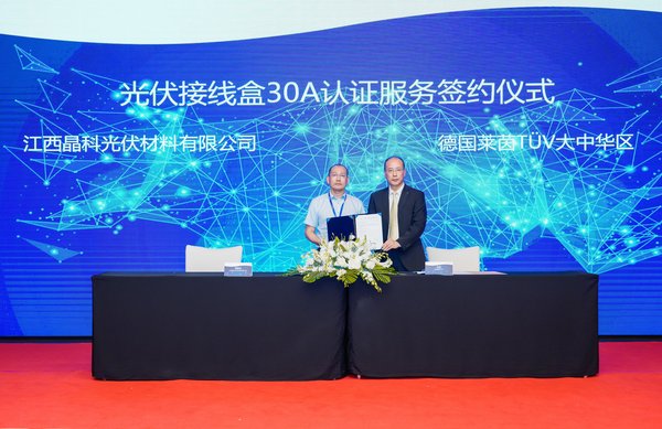 此外,TUV萊茵與9家光伏接線盒生產商簽訂了合作協議,將圍繞30A光伏接線盒進行深入合作,共同致力于大功率大尺寸光伏組件技術解決方案的研發。參與簽約的9家企業包括:江蘇暉朗電子科技股份有限公司、江蘇通靈電器股份有限公司、江西晶科光伏材料有限公司、蘇州同泰新能源科技有限公司、揚州朗日新能源科技有限公司、浙江創源光伏科技有限公司、浙江佳明天和緣光伏科技有限公司、浙江人和光伏科技有限公司和浙江中環賽特光伏科技有限公司。