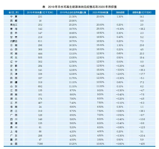 2020年5月6日國家能源局印發(fā)的《關(guān)于2019年度全國可再生能源電力發(fā)展監(jiān)測評價(jià)的通報(bào)》,對2019年各省可再生能源電力消納情況進(jìn)行了通報(bào),從非水可再生能源電力消納量占全社會用電量比重的情況來看,全國9省(區(qū))占比超過15%,其中寧夏、西藏、黑龍江、青海和吉林占比超過18%。