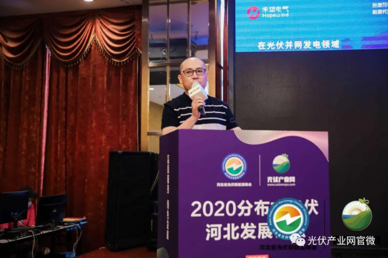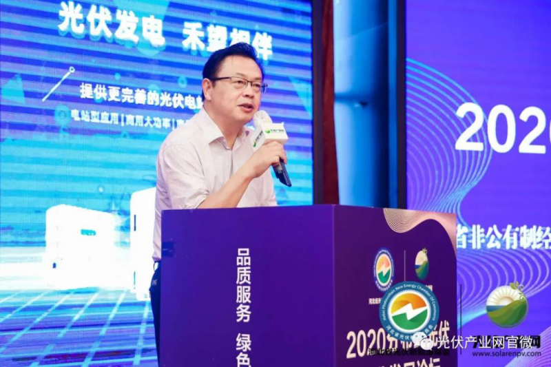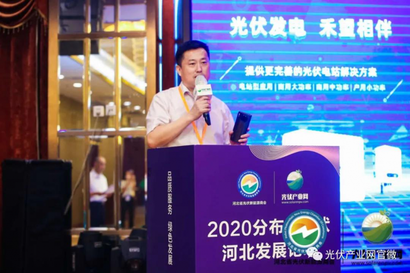 在河北省光伏新能源商會秘書長馬獻立的主持下,下半場論壇順利開展。首先進行了短暫的抽獎和互動環節。結束后,馬秘書長就河北省分布式光伏市場進行分析,他表示:“2020年,戶用光伏將會成為新的爆發點。截至2020年6月,戶用分布式光伏新增并網20萬戶,約2.04GW。全年光伏補貼15億元,戶用光伏占據1/3的補貼,體現了國家能源主管部門對戶用光伏的高度重視和認可。據大數據統計,河北可安裝戶用光伏近100萬戶,空間和潛力非常大,截止2019年底戶用光伏安裝已達到20萬戶。預計2020年河北省戶用光伏裝機規模約1GW左右,按每個村安裝20戶、每戶15-20KW計算,河北省戶用光伏安裝數量將達到在5-6萬戶。”