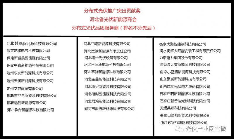 此外,“燕趙獎---分布式光伏品質服務商”頒獎儀式也正式開始。獲獎名單如下: