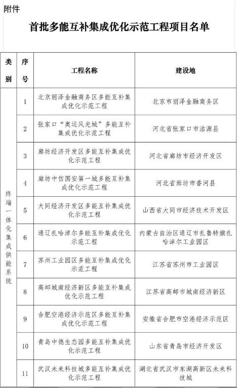 附件:首批多能互補(bǔ)集成優(yōu)化示范工程項(xiàng)目名單