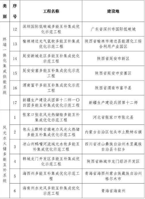 國(guó)家能源局關(guān)于公布首批多能互補(bǔ)集成優(yōu)化示范工程的通知