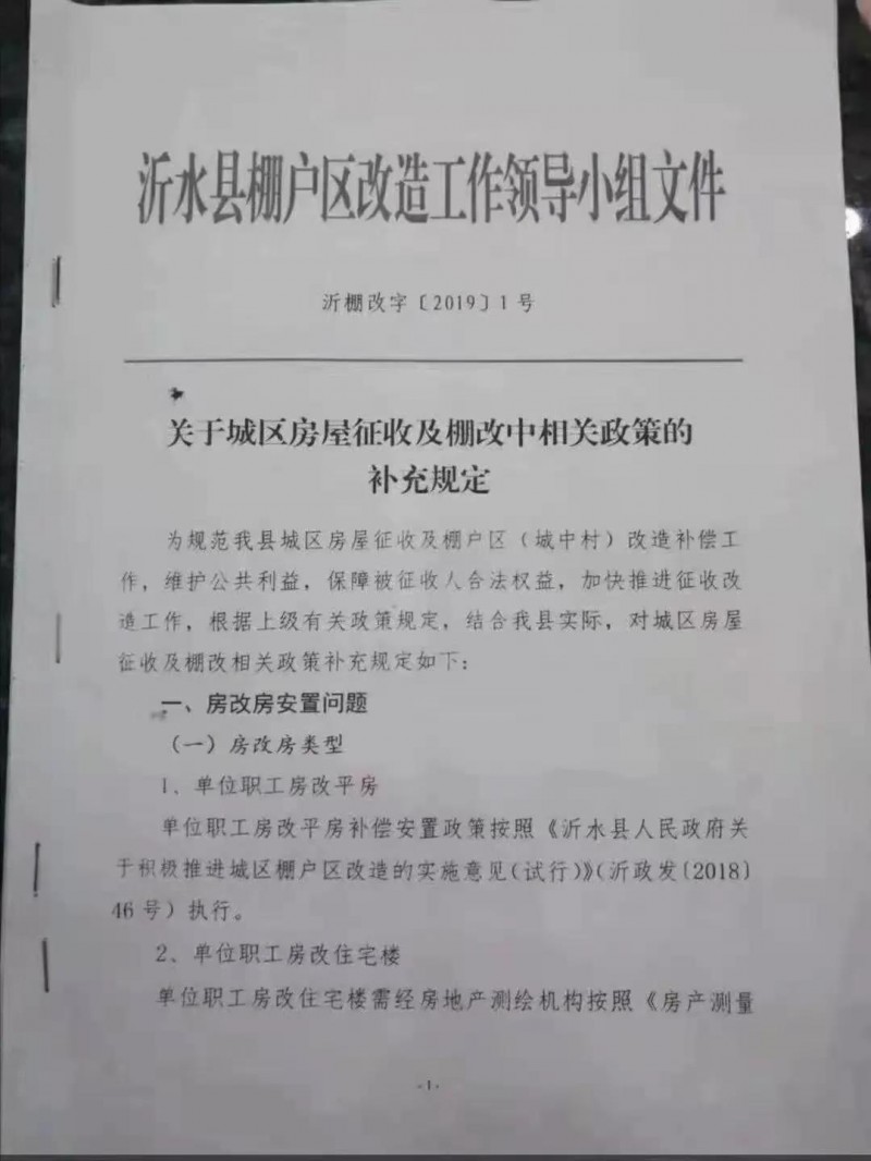 近日,山東省臨沂沂水縣發布關于城區房屋及棚改中相關政策的補充規定,明確