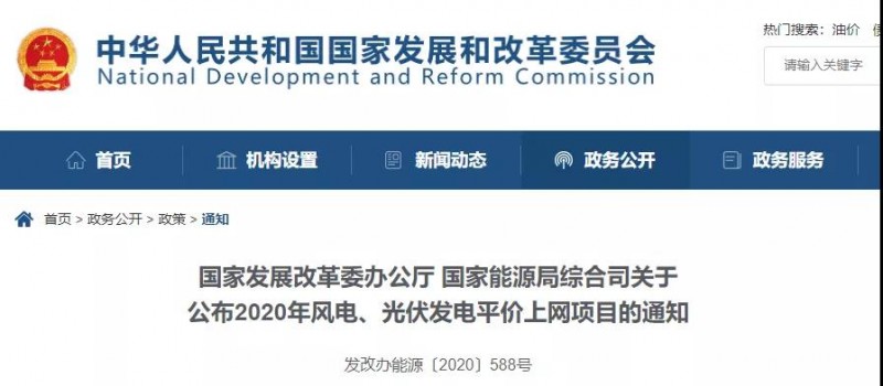 根據《國家發展改革委 國家能源局關于積極推進風電、光伏發電無補貼平價上網有關工作的通知》(發改能源〔2019〕19號)、《關于2020年風電、光伏發電項目建設有關事項的通知》(國能發新能〔2020〕17號)要求,結合各省級能源主管部門報送信息,2020年風電平價上網項目裝機規模1139.67萬千瓦、光伏發電平價上網項目裝機規模3305.06萬千瓦,現予公布。