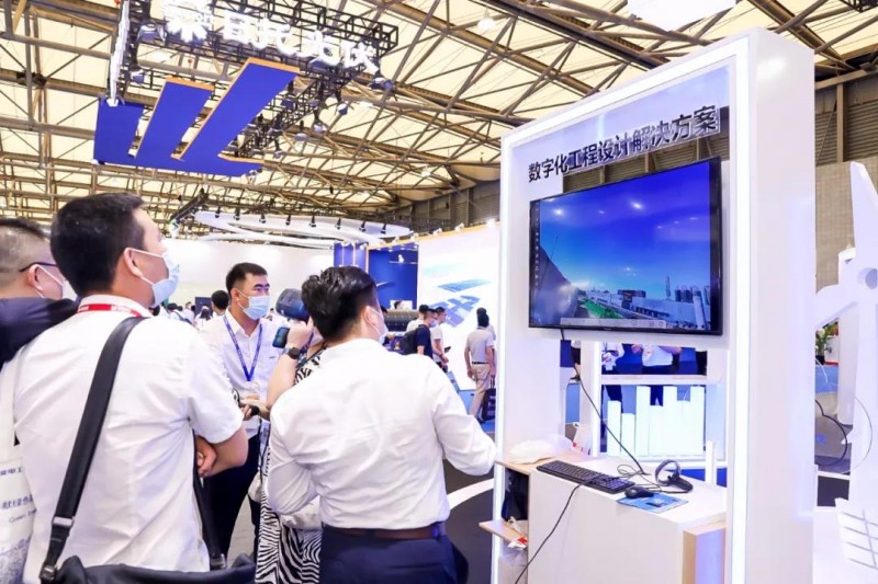 展會現(xiàn)場,通過VR設備展示數(shù)字化設計平臺在風電場、光伏電站、升壓站等場景下的數(shù)字化三維建模及沉浸式效果,吸引了眾多參觀者的目光。