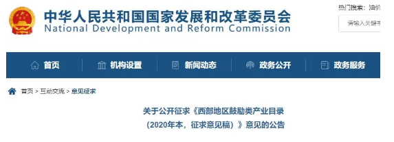 西部地區鼓勵類產業目錄(2020年本,征求意見稿)為推進西部大開發形成新格局,促進西部地區產業結構調整和特色優勢產業發展,制定本目錄。本目錄共包括兩部分,一是國家現有產業目錄中的鼓勵類產業,二是西部地區新增鼓勵類產業。