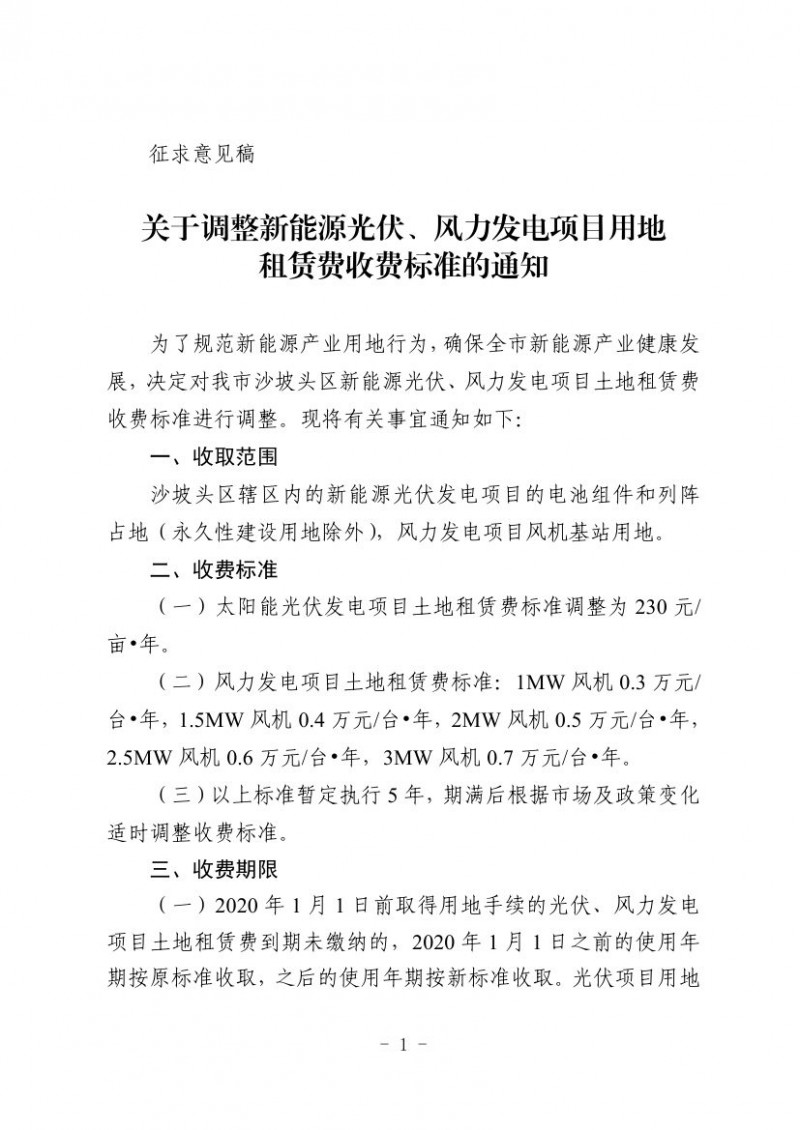 附件:關于調整新能源光伏、風力發電項目用地租賃費收費標準的通知(征求意見稿)