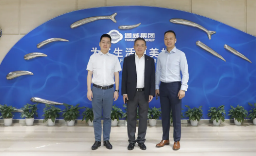 李東生董事長一行參觀了集團體驗中心,詳細了解了通威38年發展歷程,對通威農業和新能源雙主業發展成果、“漁光一體”創新發展模式表示高度贊賞。