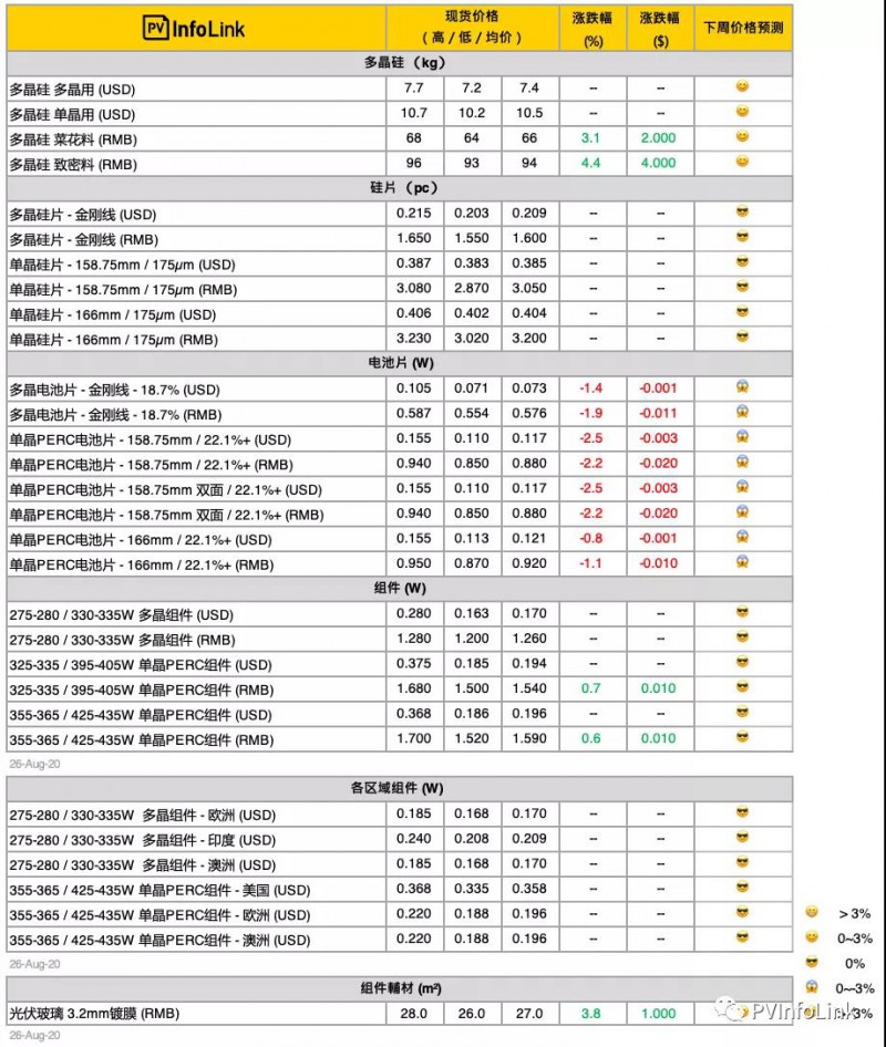 PV Infolink的現(xiàn)貨價(jià)格主參考超過100家廠商之資訊。主要取市場上最常成交的“眾數(shù)”資料作為均價(jià)(并非加權(quán)平均值)、但每周根據(jù)市場氛圍略有微調(diào)