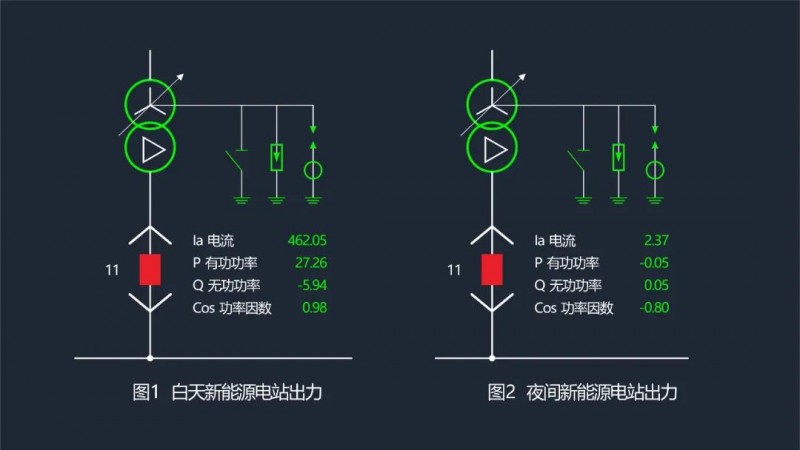 因此,造成電站收益損失的根本原因在于光伏電站不發電或發電功率較小時,電站正向計量功率因數不達標,造成光伏電站產生的力率調整電費(罰款)。