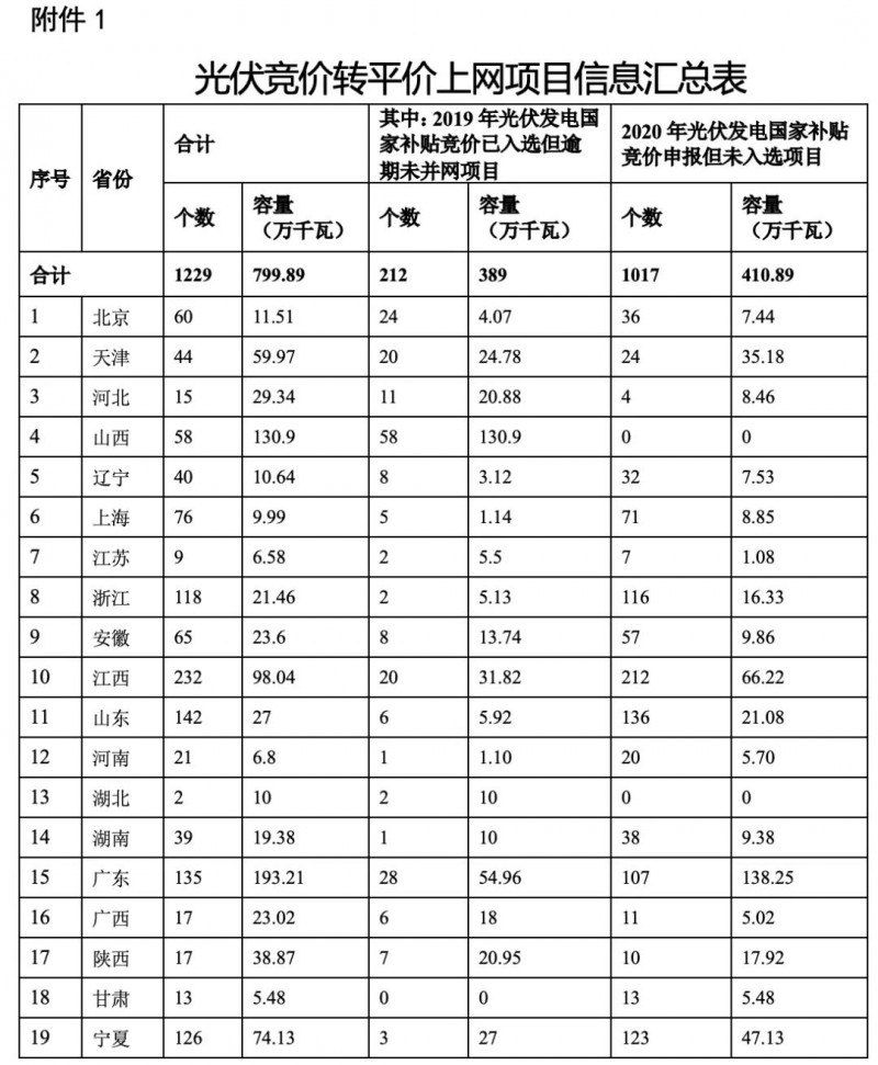 附件:1. 光伏競價轉平價上網項目信息匯總表