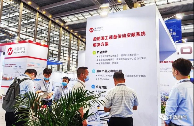 展會現場禾望更隆重展出明星產品,HV500系列高性能應用變頻器與HD2000系列高端應用變頻器,兩大系列適用于船舶海工裝備傳動變頻系統、港口港機傳動變頻系統等一系列解決方案,吸引了行業人士駐足觀看與交流。