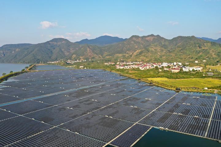 10月20日,建德三都鎮(zhèn)20MWp漂浮式光伏電站示范項目在水面上波光粼粼,與美麗鄉(xiāng)村形成一幅和諧的生態(tài)畫卷。華東院建德三都鎮(zhèn)20MWp漂浮式光伏電站示范項目位于春江源村,占用魚塘面積420畝,裝機容量20MWp,年平均發(fā)電量1873萬度,為魚塘養(yǎng)殖、風景旅游、生態(tài)保護等提供電力支持。水面漂浮式光伏電站通過科學布置,將水產(chǎn)養(yǎng)殖同光伏發(fā)電二者進行立體結(jié)合,一定程度上抑制藻類成長,有利于水污染防治、水產(chǎn)養(yǎng)殖,真正實現(xiàn)了上層光伏發(fā)電,下層水產(chǎn)養(yǎng)殖的目的。
