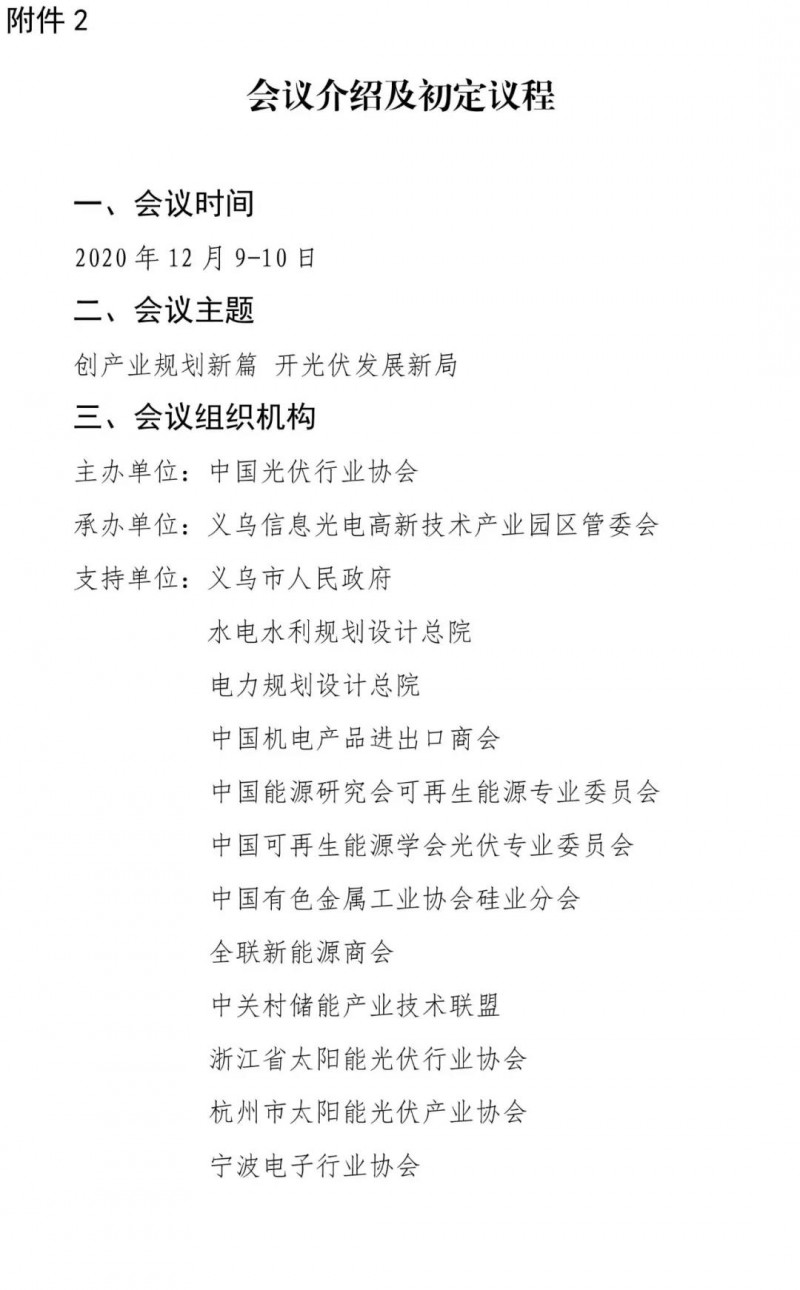 為更好探討新階段、新形勢下我國未來光伏行業發展方向與路徑,促進行業交流與溝通,中國光伏行業協會擬于2020年12月10日召開“2020中國光伏行業年度大會”,邀請行業主管部門、行業組織、行業專家、光伏企業領袖等代表一起就行業發展熱點問題進行探討分析。大會同期(12月9日)還將組織召開產業化技術發展與應用論壇。