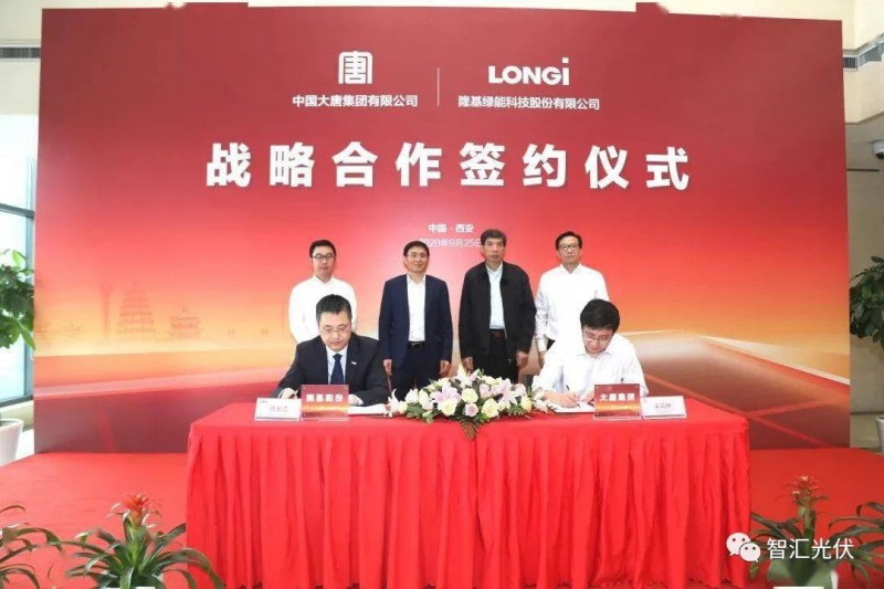 9月25日,中國大唐與隆基綠能科技股份有限公司在西安簽署戰略合作框架協議。中國大唐黨組書記、董事長陳飛虎,隆基股份董事長鐘寶申出席簽約儀式。