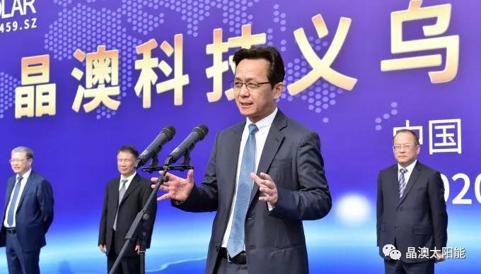 金華市委常委、義烏市委書記林毅在致辭中表示,晶澳義烏項目將帶動義烏人才科技集聚質的改變,帶動義烏產業結構轉型升級和高端制造集群發展。項目僅用142天,就建成全球最大的光伏智能單體車間,再次刷新了“當年簽約、當年開工、當年投產”的義烏項目建設速度。