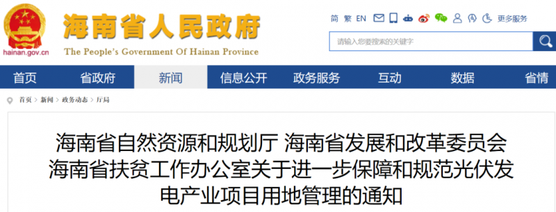 海南省自然資源和規(guī)劃廳海南省發(fā)展和改革委員會 海南省扶貧工作辦公室關(guān)于進(jìn)一步保障和規(guī)范光伏發(fā)電產(chǎn)業(yè)項(xiàng)目用地管理的通知