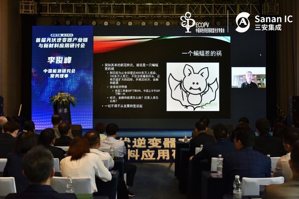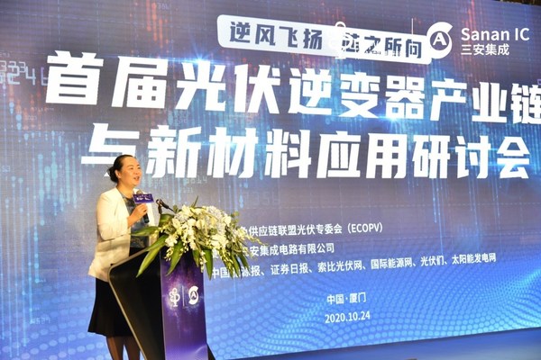 此次研討會由中國綠色供應鏈聯盟光伏專委會主辦,廈門市三安集成電路有限公司承辦。出席本次研討會的嘉賓包括:工業和信息化部電子信息司副司長楊旭東,工業和信息化部電子信息司電子基礎處金磊,工業和信息化部國際經濟技術合作中心主任、中國綠色供應鏈聯盟副理事長兼秘書長鄭紅,中國綠色供應鏈聯盟光伏專委會主任沈輝、秘書長呂芳,中國能源研究會常務理事李俊峰,工業和信息化部國際經濟技術合作中心能源資源環境研究所所長毛濤等等行業專家、研究機構、發電公司、光伏逆變器企業、媒體的近百位嘉賓蒞臨。原國務院參事、中國可再生能源學會第七、八屆理事長石定寰通過視頻的方式向本次研討會的召開送上賀詞,提出對光伏逆變器產業鏈的期許。