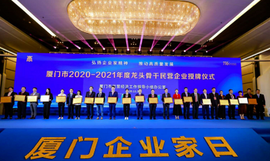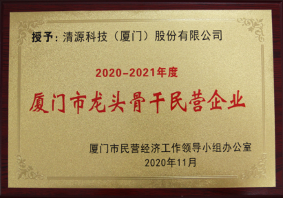 廈門市龍頭骨干民營企業認定授牌儀式在本次盛會上舉行,來自各行各業的90家企業光榮上榜。經過層層選拔,清源科技被授予“廈門市2020-2021年度龍頭骨干民營企業”