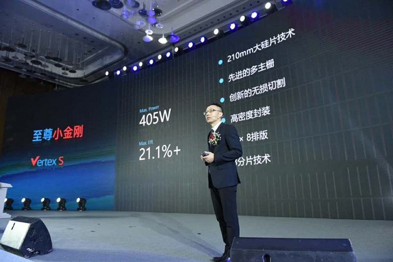至尊小金剛Vertex S系列,是天合光能專門針對住宅和商業屋頂應用的全新一代高效光伏組件。Vertex S系列結合運用了210mm電池、多主柵技術、無損切割和高密度封裝等技術,輸出功率突破405W+。該產品有不同的外觀設計可供選擇,能夠同時滿足住宅和商業客戶多樣化的需求。