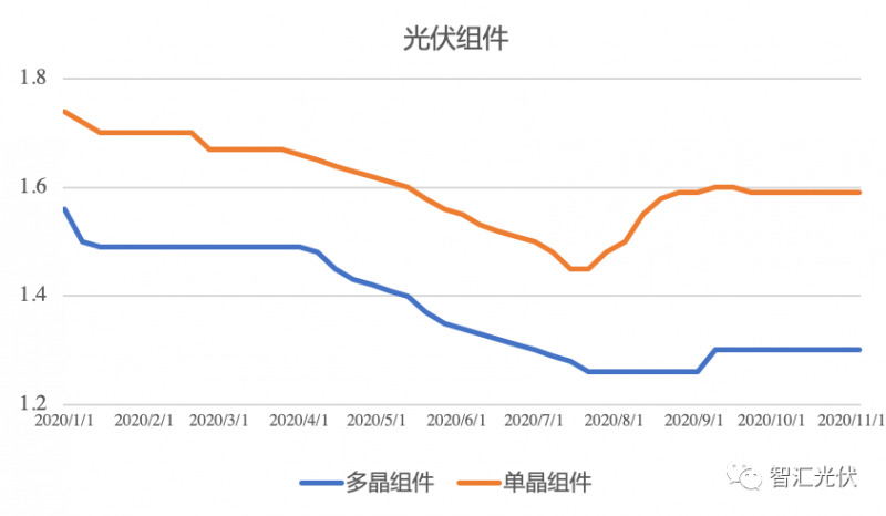 在年初疫情造成市場慘淡,下半年主材、輔材均上漲的情況下,2020年的組件價格走出一條V字型曲線。