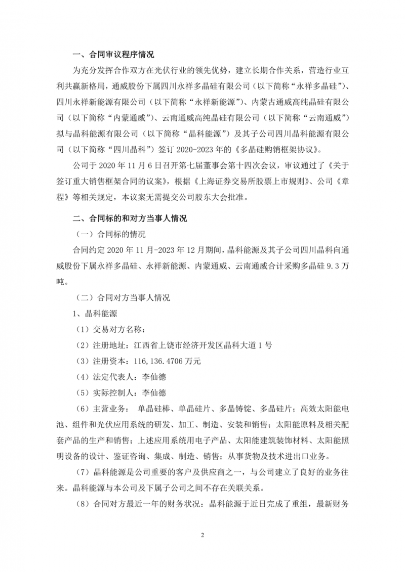 晶科3年采購通威9.3萬噸硅料!