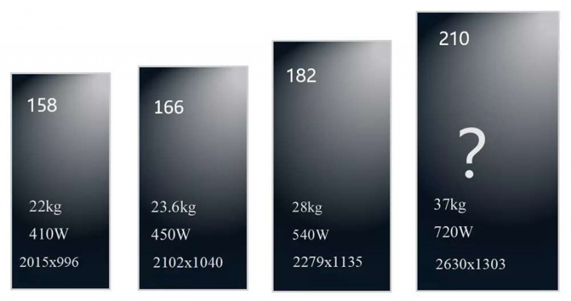 按這樣的邏輯,210硅片所對應的組件應該是720W?這樣的組件對應尺寸已經到了2. 6米長,1.3米寬,重量達到37kg,這與當下的產業鏈配套顯然存在問題。行業里也早已有共同的認知:不要單純為了提高組件功率把組件越做越大。