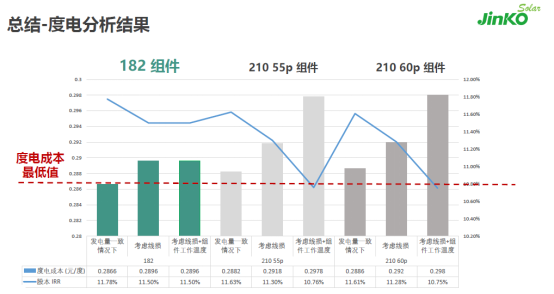實際上,大尺寸組件帶來的降本已經被行業所認可。晶科能源全球產品高級經理于瀚博道,“通過降低線損和內部損耗來提高電站發電量是降本的方式之一,182組件較55P版型的210組件來說,可以降低0.21%的線損和2%的內部損耗,而這部分成本可能要用超過0.1元/瓦的EPC成本去彌補。在BOS成本方面,182較210組件可帶來約2.6分/瓦左右的節省。通過不同維度對比度電成本、BOS成本以及IRR,182產品均是最優選擇。”