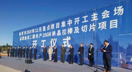 11月18日,晶澳曲靖基地二期年產20GW單晶拉棒及切片項目隆重開工。曲靖市委副書記、市長李石松等領導出席開工儀式,晶澳科技董事、執行總裁牛新偉致辭。