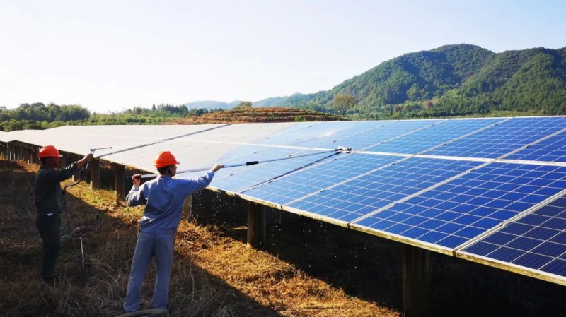 ▲運維人員清洗光伏面板