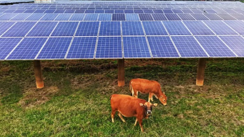 ▲牛群在光伏發電板下的草地中自由覓食