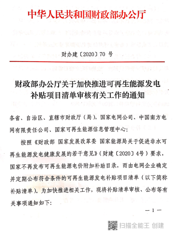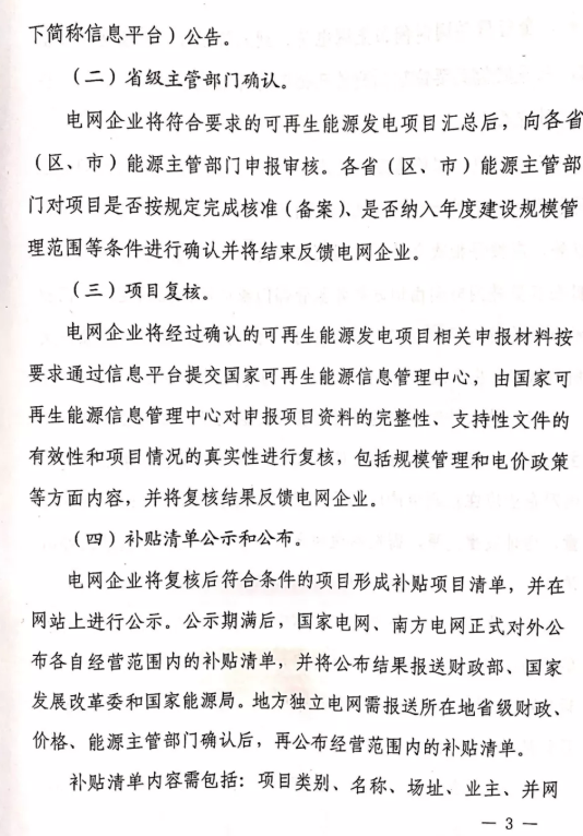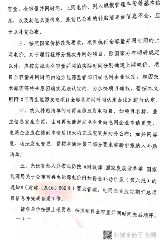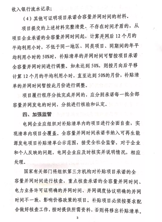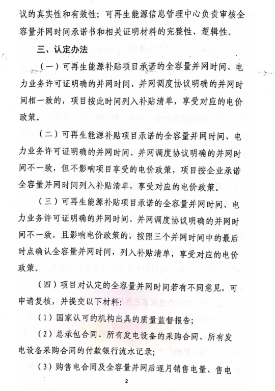 值得注意的是,70號文明確規定,所有項目必須全容量并網后才能享受國家補貼,還專門制定了《可再生能源發電項目全容量并網時間認定辦法》。可再生能源補貼項目承諾的全容量并網時間、電力業務許可證明確的并網時間、并網調度協議明確的并網時間不一致,且影響電價政策的,按照三個并網時間中的最后時點確認全容量并網時間,列入補貼清單,享受對應的電價政策。