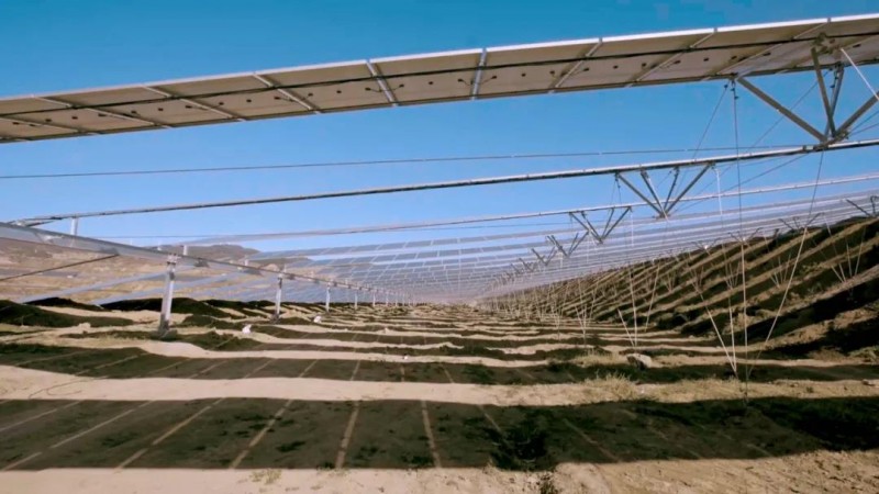 特變電工新能源利用采煤復墾區域的平地和坡地相結合的綜合利用土地理念,在建設過程中首次采用柔性支架以及大坡度大跨距斜坡支架技術,有效地降低項目整體建設成本,提高安全耐用性、抵御大風破壞。特變電工新能源項目負責人介紹,“相同土地面積的區域,柔性支架的容量約為常規固定支架的3倍,極大地提升土地利用率,在土地緊缺的情況下確保項目的全容量布置”。