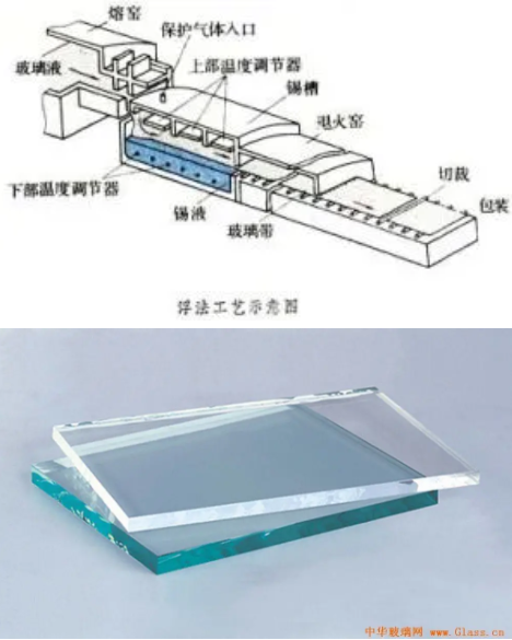 生產玻璃的各種原材料經過均勻混合在窯爐里充分燃燒后,最終會形成溫度高達1500度的橘黃色液態狀玻璃液,浮法和壓延都是玻璃液冷卻和成形的工藝方法。