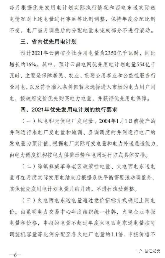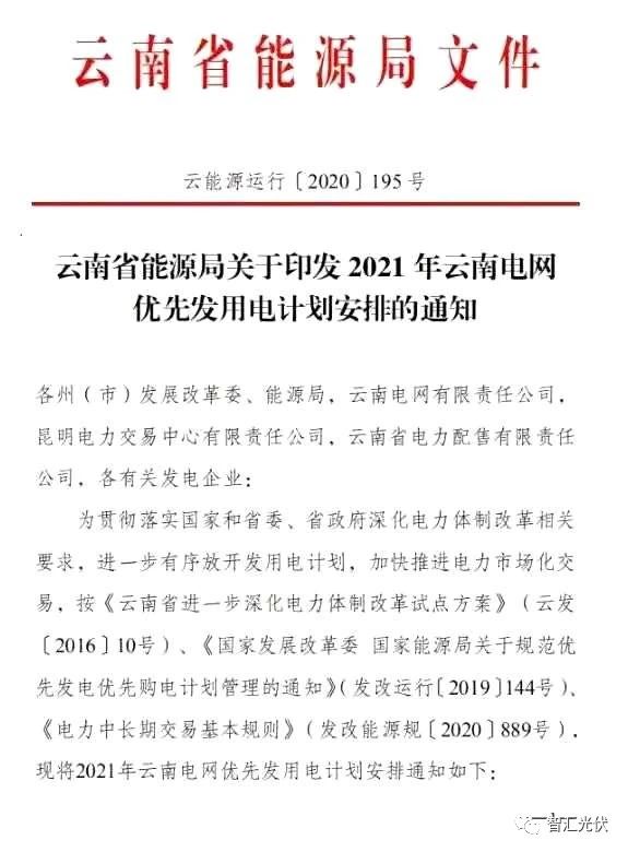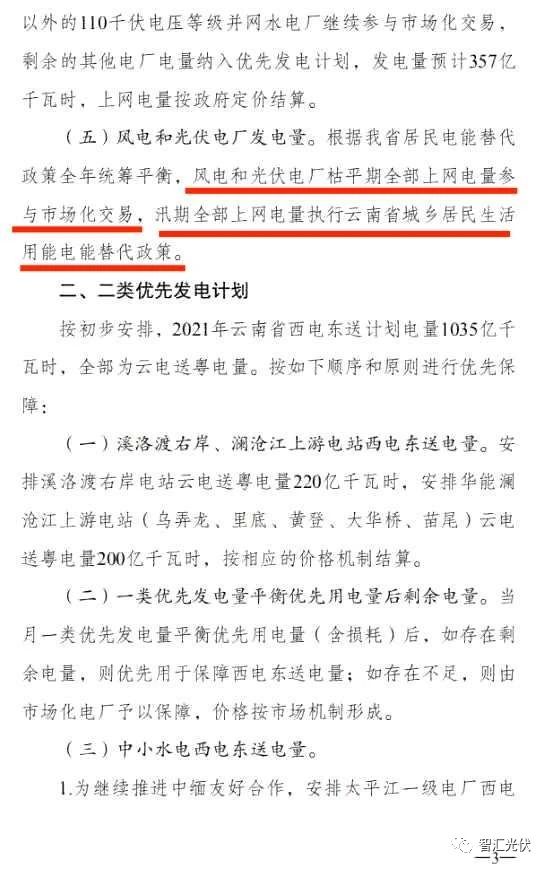 11月25日,云南省能源局下發《2021年云南電網優先發用電計劃安排的通知》,將風電、光伏歸為一類優先發電計劃,但要求:1)平、枯水期全部市場化交易;2)豐水期執行云南省城鄉居民用能替代政策!