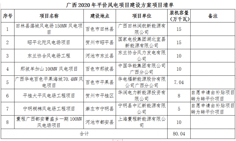 一、列入2020年平價風電項目建設方案項目共8個,裝機容量約80萬千瓦;列入2020年第一批平價光伏項目建設方案項目共3個,裝機容量26萬千瓦。具體項目詳見附件。
