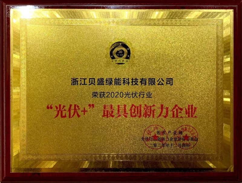 本次評選活動以“創新賦能 共迎平價”為年度主題,用專業、權威的價值視野,倡導創新進取,尋找本年度的“創新”標桿企業,引領中國光伏產業創新與可持續發展。在經過申報-初審及公示-網上投票等環節的激烈角逐之后,貝盛綠能從數百家企業中脫穎而出,在行業主管部門、眾多投資商、EPC企業、科研機構及產業鏈上下游企業的共同見證下將兩項大獎收入囊中,可謂實至名歸。