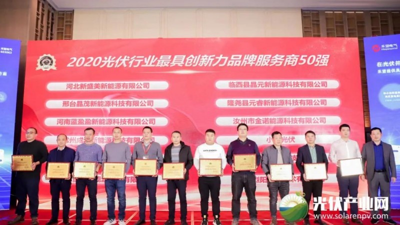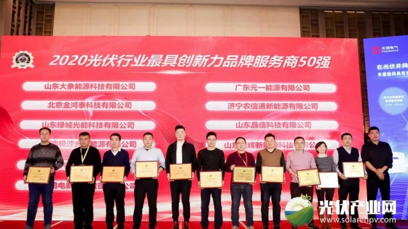 12月4日,“「PV TOP 50」2020光伏創(chuàng)新榜”頒獎(jiǎng)典禮,在山東濟(jì)南圓滿落下帷幕!